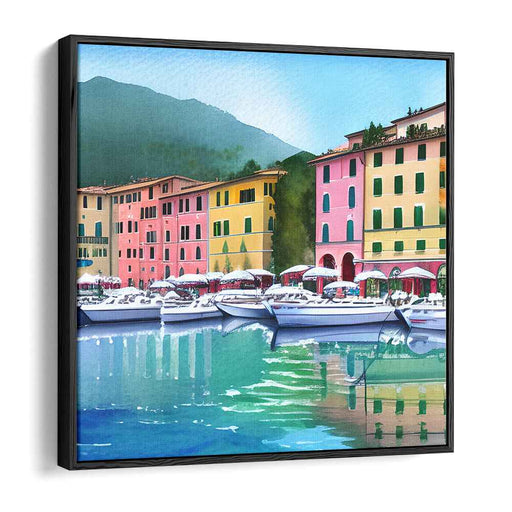 Serene Coastal Town: Vibrant Waterfront Reflections Canvas Art Print