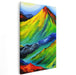 Introducing "Alpine Colorways," a mesmerizing mountain landscape canvas art that pulsates with vibrant energy and dynamic movement, capturing the raw beauty and majesty of nature in a contemporary expressionist style. This vivid artwork centers around a majestic mountain peak, ablaze in radiant yellows and fiery reds, creating a molten spectacle at its summit.