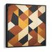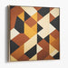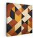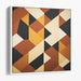 Introducing "Amber Noir Fusion," a mesmerizing canvas art print that mesmerizes viewers with its intricate geometric abstraction, showcasing a stunning mosaic of shapes and colors that exude modernity and sophistication. This captivating artwork is a harmonious blend of triangles and rectangles interlocking in a complex, tessellated pattern, dominated by a rich, warm amber hue complemented by deep black, burnt sienna, and creamy beige tones.