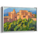 The fortress, with its towering rectangular structures and conical roofs, showcases the architectural splendor of historical edifices. The artist skillfully blends impressionistic and realistic styles, using soft brushstrokes to intricately detail the fortress while infusing a more abstract feel to the surrounding trees, creating a captivating visual contrast.