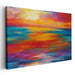 The artwork's serene and vibrant mood makes it a perfect addition to spaces seeking a touch of serenity and beauty. Ideal for a living room or bedroom, this piece creates a calming yet vibrant ambiance, inviting viewers to bask in the tranquil beauty of a sunset over the ocean.