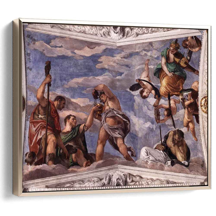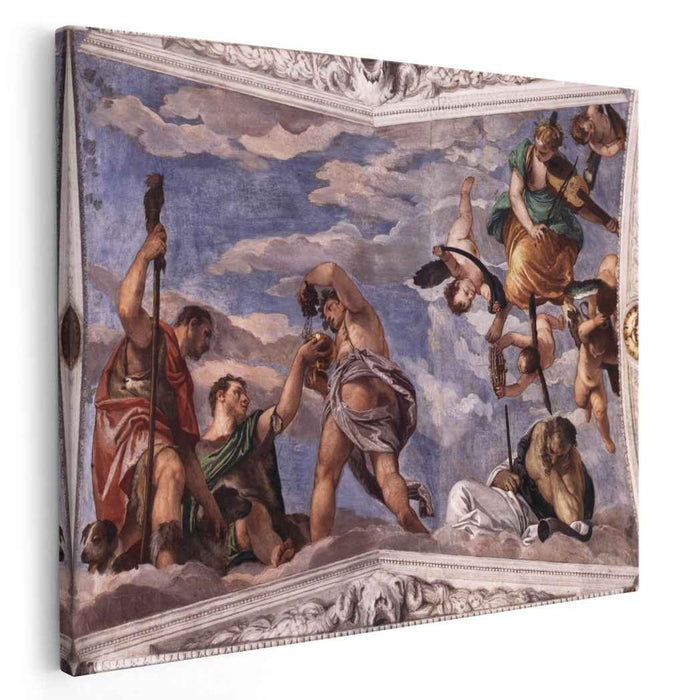 Immerse yourself in the vibrant world of Paolo Veronese's "Bacchus, Vertumnus and Saturn," a captivating canvas that blends mythology, symbolism, and artistic mastery. This enchanting masterpiece, now meticulously reproduced on high-quality canvas, invites you to explore its layers of meaning and aesthetic brilliance.