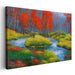 Blaze of Autumn Colors: Vibrant Landscape with Fiery Red Trees Canvas Art Print
