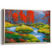 Introducing 'Blaze of Autumn Colors: Vibrant Landscape with Fiery Red Trees,' a mesmerizing canvas art print that encapsulates the vibrant beauty and serene atmosphere of autumn. This captivating artwork transports viewers to a scene dominated by fiery red maple trees, their vivid foliage standing out against the softer hues of green and blue that surround them. A tranquil stream winds its way through the composition, mirroring the tree's colors and infusing the piece with a sense of movement and life.