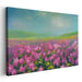Immerse yourself in the serene beauty of 'Blossom Symphony Reverie: Lush Pink Floral Landscape.' This captivating canvas art print transports viewers into a dreamy landscape filled with vibrant, lush pink flowers under a soothing sky. The foreground is dominated by a dense cluster of pink blossoms, rich in texture and depth, achieved through expressive brush strokes and varying shades of pink mixed with hints of white and purple. These flowers stretch across the canvas, creating a sense of endless bloom that invites the viewer to step into the scene. Above, the sky transitions from a gentle turquoise to a soft, pastel blue, suggesting a peaceful dawn or dusk. The horizon is subtly defined by a faint line of green, hinting at distant fields or hills, adding depth and perspective to the composition.
