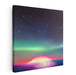 Introducing "Celestial Hues Collide: Dreamy Aurora and Starry Night," a mesmerizing canvas art print that transports viewers to a serene and otherworldly landscape where the sky seamlessly meets the sea in a captivating dance of colors and light. This enchanting artwork is a celebration of the ethereal glow of a setting or rising sun, painting the horizon in radiant hues of pink and purple, while the tranquil blue sky above is adorned with countless stars, evoking a sense of infinite wonder.