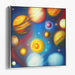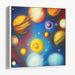 Introducing 'Celestial Palette Adventure: A Vibrant Journey Through the Solar System,' a mesmerizing cosmic artwork that transports viewers on a vibrant odyssey through the wonders of the universe. This captivating painting showcases a diverse array of planets, each uniquely textured and colored, gracefully suspended in the deep, starry expanse of space.