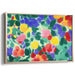 This artwork exudes a cheerful and uplifting mood, reminiscent of a sunny spring day in a blooming garden. The primary colors of yellow, red, and blue dominate the palette, while secondary hues like green and pink add depth and variety, enriching the overall visual experience.