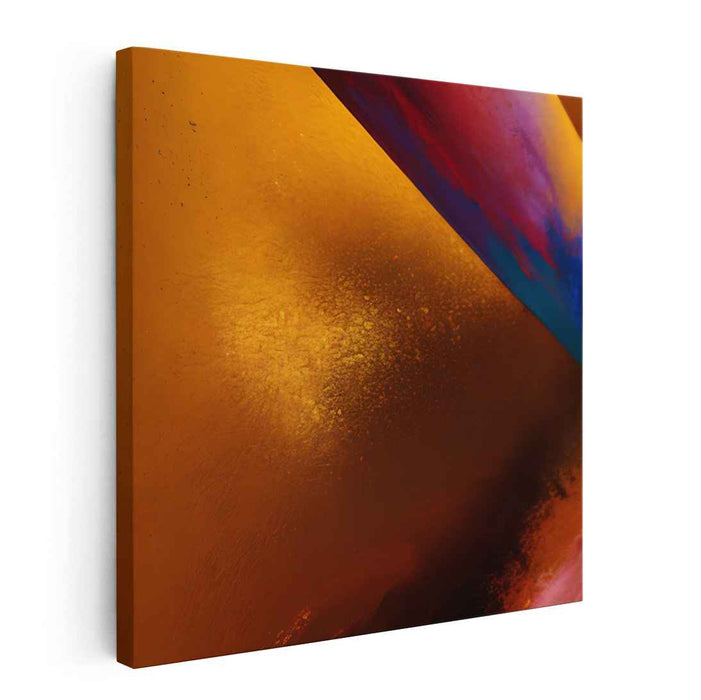 Introducing "Colorful Chaos," a mesmerizing abstract expressionist canvas art that captivates the viewer with its dynamic interplay of vibrant colors and textures, exuding a fiery energy that invigorates the senses. This artwork is a symphony of warm tones, with a dominant golden orange hue that radiates warmth and vitality, harmoniously complemented by deep reds, purples, and hints of blue, creating a visually striking and balanced composition.