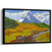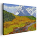 Introducing "Colorful Dreamscapes," a captivating canvas art piece that immerses viewers in the breathtaking beauty of a mountain landscape, evoking a sense of serenity and rejuvenation by bringing the essence of nature into living spaces. This stunning artwork showcases a vibrant foreground teeming with life—a meandering river gracefully flowing through fields painted in golden and green hues, guiding the gaze towards the majestic snow-capped mountains standing tall in the background.