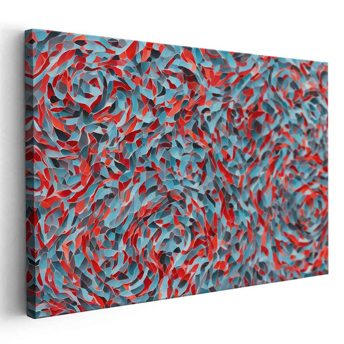 Step into the mesmerizing world of 'Crimson Wave Symphony: Abstract Ocean of Red and Blue,' a striking canvas art piece that immerses you in the intense emotions of a turbulent sea. This artwork intricately weaves together a rich tapestry of red and blue tones, meticulously arranged to mimic the swirling motions of ocean waves. The interplay of sharp, angular shapes with fluid forms creates a visually captivating complexity that both energizes and enchants.