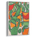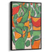 The composition of this artwork is a harmonious interplay of abstract shapes reminiscent of plant-like forms. These shapes intertwine and overlap, imbuing the piece with a sense of perpetual movement and boundless energy. The dominant vibrant green is complemented by the fiery secondary colors of orange and red, establishing a striking contrast that is both visually stimulating and artistically balanced.
