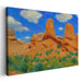 Introducing 'Desert Mirage Palette Burst: Vibrant Landscape of the American Southwest,' a mesmerizing canvas art print that captures the raw beauty and vivid colors of the desert landscape with masterful precision. This artwork showcases towering rock formations standing proudly against a backdrop of a brilliant blue sky adorned with fluffy, white clouds.