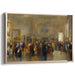 The artist's skillful use of impressionistic techniques shines through in this piece, where swift brush strokes and a rich, muted palette create a sense of movement and immediacy. The warm amber primary color sets a refined mood, harmonizing with deep maroon, navy blue, and subtle touches of white that mirror the attire of the gallery visitors. The play of light diffusing through grand windows, casting soft reflections on the polished floor and the animated crowd, adds an ethereal quality to the scene.