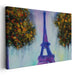 Introducing "Dreamy Eiffel: Surreal Parisian Landscape," a mesmerizing canvas art that offers a whimsical and imaginative reinterpretation of the iconic Eiffel Tower set amidst vibrant, abstract trees. This captivating piece features the Eiffel Tower as the central focal point, portrayed in bold shades of blue and purple, standing tall against a dreamy, ethereal background.