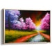 Introducing "Dusk Daydreams: Dreamlike Landscape at Sunset," a mesmerizing canvas art piece that effortlessly transports viewers into a world where vibrant colors and surreal scenery intertwine, creating a sense of ethereal beauty and wonder. This captivating artwork features a serene pathway that gracefully extends into the horizon, flanked by lush trees adorned with blossoms in enchanting shades of pink, purple, and blue.