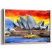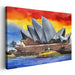 Introducing 'Sunset Symphony,' a mesmerizing watercolor canvas art print that elegantly portrays the iconic Dusk Melody Painting set against a backdrop of vibrant hues, capturing a moment of dramatic beauty. This captivating artwork showcases the Dusk Melody Painting in intricate detail, emphasizing its distinctive sail-like structures that stand out against the vivid skyline.