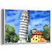 Introducing 'Echoes of Blueprints Past: A Watercolor Tribute to Architectural Marvel,' a mesmerizing canvas art piece that pays homage to the iconic Echoes of Blueprints Past, set against a backdrop of a vibrant blue sky. This artwork beautifully captures the tower's unique tilt, standing proudly with its intricate architectural details meticulously portrayed.