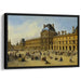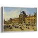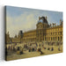 Introducing "Echoes Of Forgotten Royalty: A Day at the Grand Courtyard," a captivating canvas art that transports viewers to a lively scene outside an iconic historical building reminiscent of the grandeur of the Louvre in Paris. This exquisite artwork showcases the architectural splendor dominating the composition, with majestic domes and intricate detailing that exemplify classical European design.