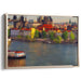 Introducing "Echoes of Old Cobblestone Streets: European Cityscape with Historic Charm," a mesmerizing landscape canvas art that transports you to a vibrant riverside European town steeped in cultural richness and architectural grandeur. This captivating artwork captures the essence of a picturesque cityscape, where historic buildings and majestic spires rise elegantly above the tranquil waters, creating a scene brimming with timeless allure.