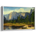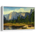 Introducing 'Edge of Tranquility,' a captivating canvas art print that transports viewers into a serene valley reminiscent of the iconic Yosemite National Park. This breathtaking artwork showcases a sunlit landscape dominated by towering cliffs and a verdant valley, inviting onlookers to immerse themselves in the grandeur of nature.