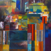 This abstract masterpiece draws inspiration from the likes of Piet Mondrian and Wassily Kandinsky, renowned for their bold explorations of color and form. Reflecting the ethos of abstract expressionism, this piece invites viewers into a world of spontaneous creation and subconscious exploration.