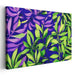 Immerse yourself in the lush vibrancy of 'Enchanted Botanicals: Luminous Leaves on Deep Blue,' a captivating canvas art print that brings the beauty of nature indoors. This artwork features an intricate composition of leaves, rendered in a striking palette of deep blues and vivid greens, with touches of purple that enhance its visual depth. The artist employs bold, fluid brushstrokes that give the foliage a dynamic, almost dancing quality. The leaves vary in shape and size, creating a rhythmic pattern that is both soothing and energizing. The primary deep blue background serves as a dramatic contrast, making the greens and purples pop, giving the artwork a lively, almost surreal appearance.