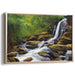 Introducing "Enchanted Grove Serenity: Tranquil Forest Waterfall," a mesmerizing canvas art print that transports you to a world of tranquility and natural beauty. This captivating artwork skillfully captures the essence of a cascading waterfall nestled in a lush, verdant forest, meticulously detailed to bring the serene landscape to life.