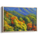 Introducing 'Enchanted Summit Symphony,' a mesmerizing canvas art that immerses viewers in a tranquil mountainous landscape during the peak of autumn. This captivating artwork depicts a lush forest painted in a symphony of vibrant fall colors, from deep reds and oranges to vivid yellows and greens, creating a visual feast for the eyes.