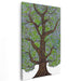 Introducing 'Eternal Roots Aglow: Stained Glass Tree of Life,' a mesmerizing canvas art print that captures the essence of a lush tree in a style reminiscent of stained glass, offering a detailed and captivating visual experience. The artwork meticulously portrays the tree's trunk and branches with bold, dark lines, exuding a sense of strength and solidity.