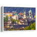 Introducing 'Ethereal Blueprint Symphony: Serene Architectural Grandeur,' a mesmerizing canvas art print that transports viewers to a bygone era of historical charm and architectural splendor. This captivating artwork showcases a picturesque cityscape of a quaint European town, nestled amidst lush greenery under a clear, azure sky, exuding a sense of tranquility and nostalgic beauty.