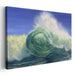 The focal point of the piece is the towering wave, depicted in luscious, translucent emerald greens that pop against the deep, ultramarine blues of the sea and sky. The artist's adept use of vibrant hues and fluid brushstrokes not only conveys movement but also immerses the viewer in the immediacy of the scene, as if witnessing nature's grandeur firsthand.