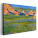 Step into the captivating world of 'Ethereal Glow on Canvas Dreams: Luminous Landscape in Oil,' a mesmerizing canvas art that encapsulates the untamed beauty of rugged terrain. This artwork showcases a series of dramatic badland hills emerging energetically from a vibrant foreground teeming with lush greenery.