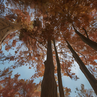 Step into the enchanting world of 'Ethereal Leaf Symphony: A Skyward View of Fall Foliage,' a mesmerizing canvas art piece that beckons you to immerse yourself in the heart of an autumn forest. The artwork captures the essence of fall at its peak, where majestic trees, painted in rich earthy browns, reach towards the clear sky, adorned with a vibrant symphony of leaves. These leaves, in fiery reds, deep oranges, and golden yellows, create a breathtaking canopy overhead, inviting you to look up and marvel at nature's artistry.