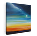 Introducing 'Ethereal Spectrum Tapestry: Celestial Gradient,' a mesmerizing canvas art print that transports viewers into a serene twilight landscape where the sky transitions through a captivating gradient of colors, capturing the magical blend of day into night. This enchanting artwork features a star-studded night sky in deep blues and radiant oranges, with two prominent stars shining brightly, adding a celestial touch to the scene.