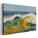The artist skillfully employs a vibrant color palette to infuse the painting with dynamism. Starting with deep blues in the backdrop, the colors seamlessly transition into a kaleidoscope of greens, yellows, and oranges, tracing the fluidity and energy of the water. The use of oil paint is masterful, creating textures that mirror the swirling motion of water and the misty spray of foam, adding a tactile dimension that enhances the artwork's realism.