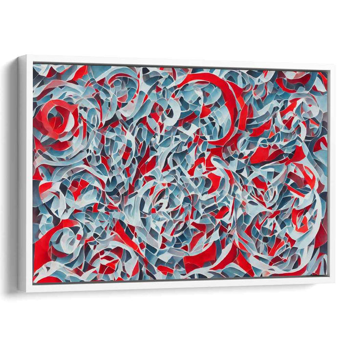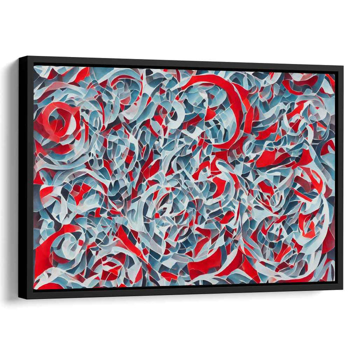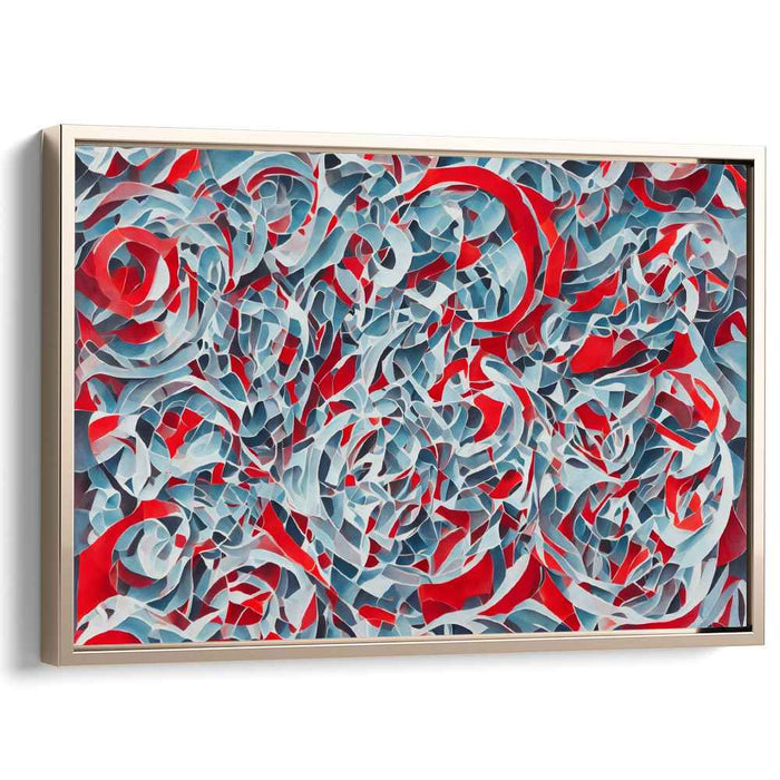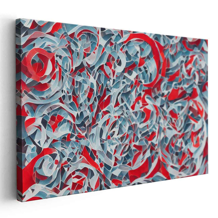 Introducing 'Ethereal Water Dance: Abstract Oceanic Canvas Art Print,' a mesmerizing artwork that encapsulates the vibrant energy and fluidity of movement. Immerse yourself in a whirlpool of dynamic forms and curves, predominantly painted in vivid crimson hues intertwined with cool blues, creating a visually stunning and calming contrast. This masterpiece is a testament to abstract expressionism, where each deliberate brushstroke and color selection aims to provoke deep emotions and contemplation.