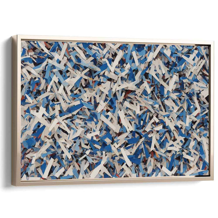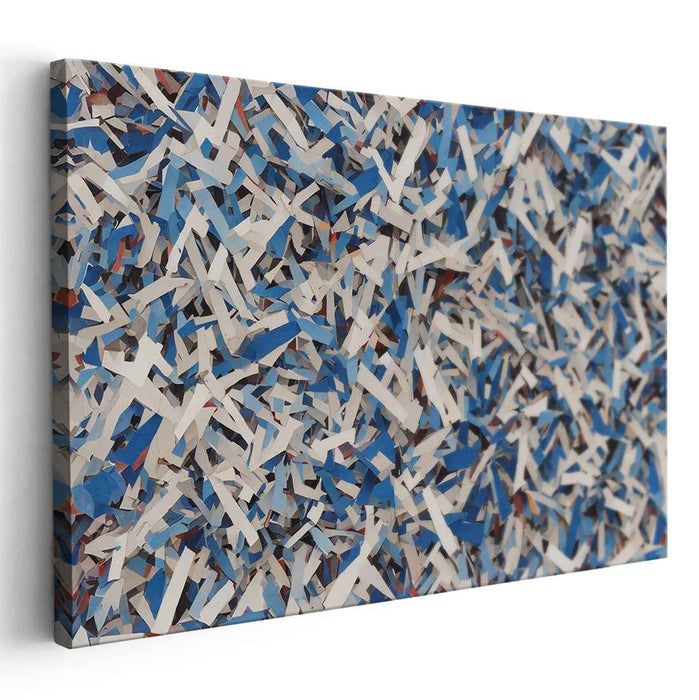 Introducing 'Fragments of Modernity,' an enthralling abstract canvas art that delves into the realms of form and color, offering a visually captivating experience that is both vibrant and intellectually stimulating. This artwork presents a dense composition of angular, jagged fragments that interlock in a seemingly chaotic yet harmonious manner, creating a dynamic visual narrative that draws the viewer in.