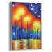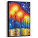 A stunning addition to any space, particularly a living room or bedroom, where its vibrant hues and mystical aura can be fully appreciated, this piece aligns with the art movements of Surrealism and Abstract Expressionism, falling under the landscape art category. The glowing trees and cosmic sky stand as the main subjects, brought to life through techniques of blending, layering, and vivid contrasting colors, creating a luminous spectacle that captivates the imagination.