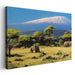 Introducing 'Gentle Giants Roam Free: Serene Elephants in African Savanna,' a captivating canvas art print that transports viewers to the vast savannahs of Africa, where the iconic Mount Kilimanjaro stands majestically in the backdrop. This serene and harmonious scene features a pair of elephants peacefully grazing among the acacia trees, meticulously depicted with a realistic style that highlights the grandeur of the snow-capped mountain against the lush greenery below.