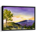 Introducing 'Gilded Waterscapes: Watercolor Landscape with Golden Sky,' a mesmerizing canvas art that transports you to a tranquil moment of a serene sunset over a picturesque mountain vista. This captivating piece showcases a vivid play of colors, transitioning from a deep, regal purple representing the sky to warm golden yellows and soft oranges mirroring the sun's descent.