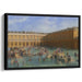 The water comes alive with animated figures engaged in various activities, from boating to standing on platforms, infusing the scene with movement and vitality. The artist's blend of realism and impressionistic techniques beautifully captures the essence of the event, creating a harmonious visual experience that draws viewers into the lively festivities.