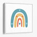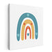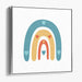 Introducing 'Heartfelt Hues: Charming Rainbow and Hearts Canvas Art', a delightful and visually soothing abstract canvas art that encapsulates the essence of joy and innocence. This artwork features a series of arches forming a rainbow, painted in soft pastel shades of blue, orange, and light teal, each adorned with small heart shapes, infusing the composition with love and warmth.