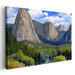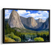 Introducing "Immersive Horizon View," a captivating landscape canvas art print that encapsulates the grandeur and tranquility of a mountainous vista, reminiscent of the majestic Yosemite Valley. This breathtaking artwork immerses viewers in a scene dominated by towering granite cliffs, expertly depicted with intricate brushstrokes that accentuate their rugged texture and play of light and shadow.