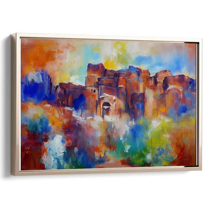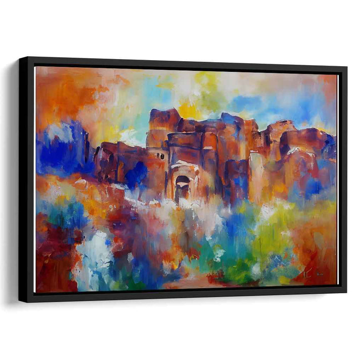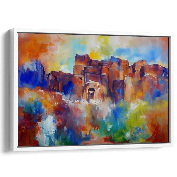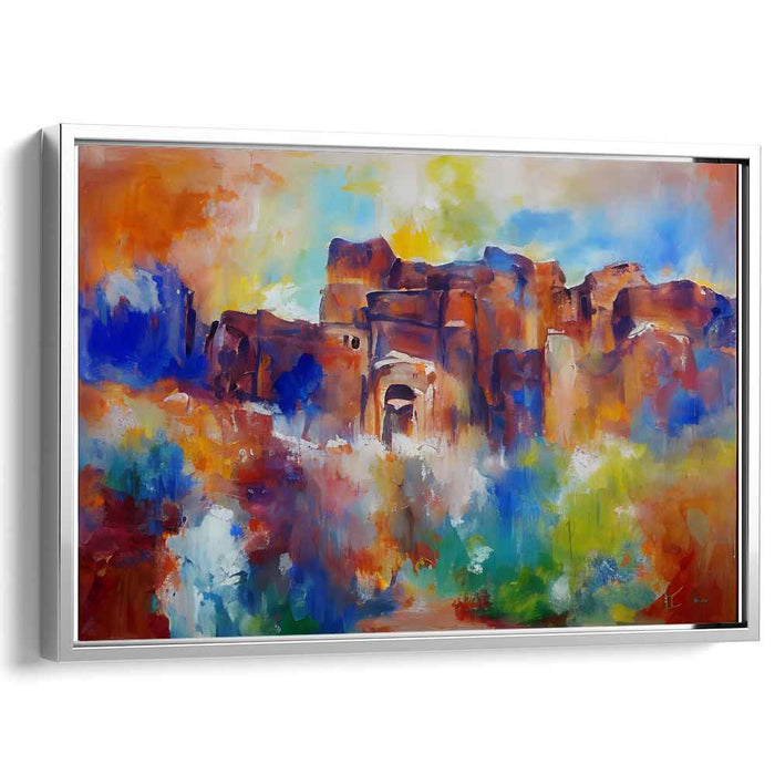Immerse yourself in the vibrant and dynamic landscape of 'Impressionist Echoes of Nature: A Vivid Impressionist Landscape Canvas Art.' This captivating piece encapsulates the grandeur of towering cliffs in a mesmerizing array of colors, harmoniously blending the fierce power and tranquil beauty of nature. Dominated by a palette of rich crimson and amber, juxtaposed with cool blues and lush greens at its base, the artwork exudes a lively and welcoming ambiance.
