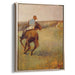 Step into the vibrant world of Edgar Degas' "Jockey in Blue on a Chestnut Horse" (1889), a captivating masterpiece that captures the essence of horse racing and the artist's pioneering techniques. This high-quality canvas print brings the painting's dynamic energy and exquisite details to life, allowing you to experience its thrilling atmosphere.