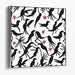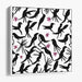 Introducing "Magenta Flight Paths," a captivating canvas art featuring a dynamic pattern of black bird silhouettes dancing across a crisp white backdrop. The artwork comes alive with birds in various poses, exuding a sense of movement and liveliness. Playfully interspersed among the birds are small, magenta star-like shapes, adding a vibrant pop of color and whimsy to the piece.