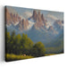 Introducing 'Majestic Alpine Landscape: Serene Mountain Peaks and Verdant Forest,' a captivating alpine canvas art that immerses viewers in a tranquil mountainous setting, where grand, rugged peaks dominate the backdrop. This mesmerizing artwork depicts snow-dusted mountains soaring majestically into a sky bathed in gentle, diffused light.