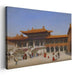 Introducing 'Majestic Courtyard: A Glimpse into Historical Chinese Palace Life,' a mesmerizing canvas art piece that transports viewers into the opulent courtyards of a traditional Chinese palace, teeming with life and architectural splendor. This exquisite artwork meticulously captures the grandeur of the palace, from its intricate carvings to the sweeping lines of the roof adorned with vibrant orange tiles, all set against a backdrop of a serene blue sky.