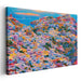 Step into the lively embrace of a Mediterranean paradise with 'Mediterranean Color Fest: A Vibrant Oia Sunset,' a captivating canvas art print that transports you to the enchanting village of Oia on the sun-soaked island of Santorini, Greece. This artwork is a vibrant celebration of colors and textures that animate the bustling hillside village, inviting you to immerse yourself in its dynamic charm.
